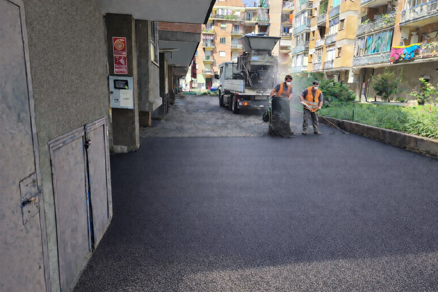 Gli interventi consentono di risolvere criticità legate a ristagni d’acqua, superfici degradate e accessi carrabili, restituendo spazi ordinati, sicuri e pienamente fruibili, con una qualità estetica coerente con il livello dell’edificio.